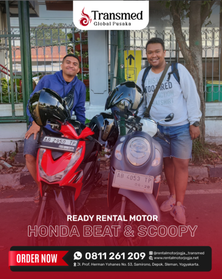 Nikmati serunya menjelajahi Yogyakarta mudah dan hemat bersama layanan Sewa Motor Jogja di Transmed Global Pusaka! Tersedia berbagai pilihan motor terbaru, nyaman, dan irit bahan bakar. Siap menemani petualangan Anda ke Malioboro, Kaliurang, Candi Prambanan, hingga pantai-pantai indah di Gunung Kidul. Proses sewa cepat, harga terjangkau, dan antar-jemput motor langsung ke lokasi Anda. Liburan jadi lebih fleksibel dan pastinya menyenangkan, tanpa ribet! Pesan sekarang dan rasakan kebebasan berkeliling Jogja sesuka hati.