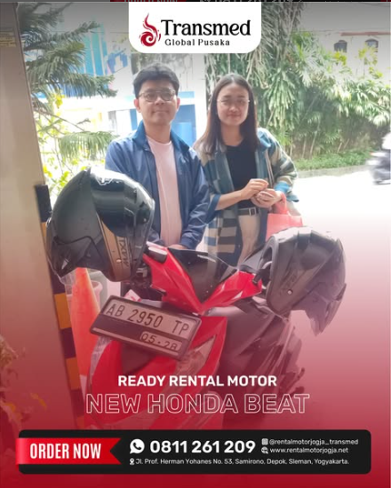 Nikmati serunya menjelajahi Yogyakarta mudah dan hemat bersama layanan Sewa Motor Jogja di Transmed Global Pusaka! Tersedia berbagai pilihan motor terbaru, nyaman, dan irit bahan bakar. Siap menemani petualangan Anda ke Malioboro, Kaliurang, Candi Prambanan, hingga pantai-pantai indah di Gunung Kidul. Proses sewa cepat, harga terjangkau, dan antar-jemput motor langsung ke lokasi Anda. Liburan jadi lebih fleksibel dan pastinya menyenangkan, tanpa ribet! Pesan sekarang dan rasakan kebebasan berkeliling Jogja sesuka hati.